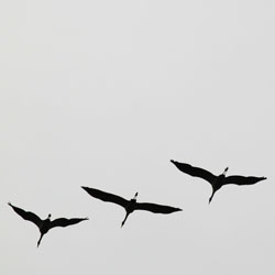Die Kraniche sind bereits vor Wochen gestartet. Nachdem YLENIA, ZEYNEP und ANTONIA durchgezogen sind, nutzen die Zugvögel den anhaltend kräftigen Wind, um die Brutplätze im Norden zu besetzen. Es ist Eile geboten, denn der frühe Vogel kriegt den besten Platz. Mit lautem Trompeten ziehen sie von Frankreich und Spanien über unsere Köpfe hinweg dem Frühling entgegen.