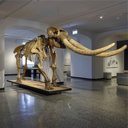 Das berühmte Skelett »Peale’s Mastodon« steht nach längerer Abwesenheit endlich wieder im Eingangsbereich der Erd- & Lebensgeschichte. Von März 2020 bis Juli 2021 war es als Leihgabe in der Ausstellung »Alexander von Humboldt and the United States: Art, Nature, and Culture« im Smithsonian American Art Museum (SAAM) in Washington DC zu bestaunen. Erst kürzlich endete die Sonderausstellung »American Heiner – Ein Mammut macht Geschichte«, in der dessen Geschichte im Großen Saal des Hessischen Landesmuseums aufwendig präsentiert wurde.