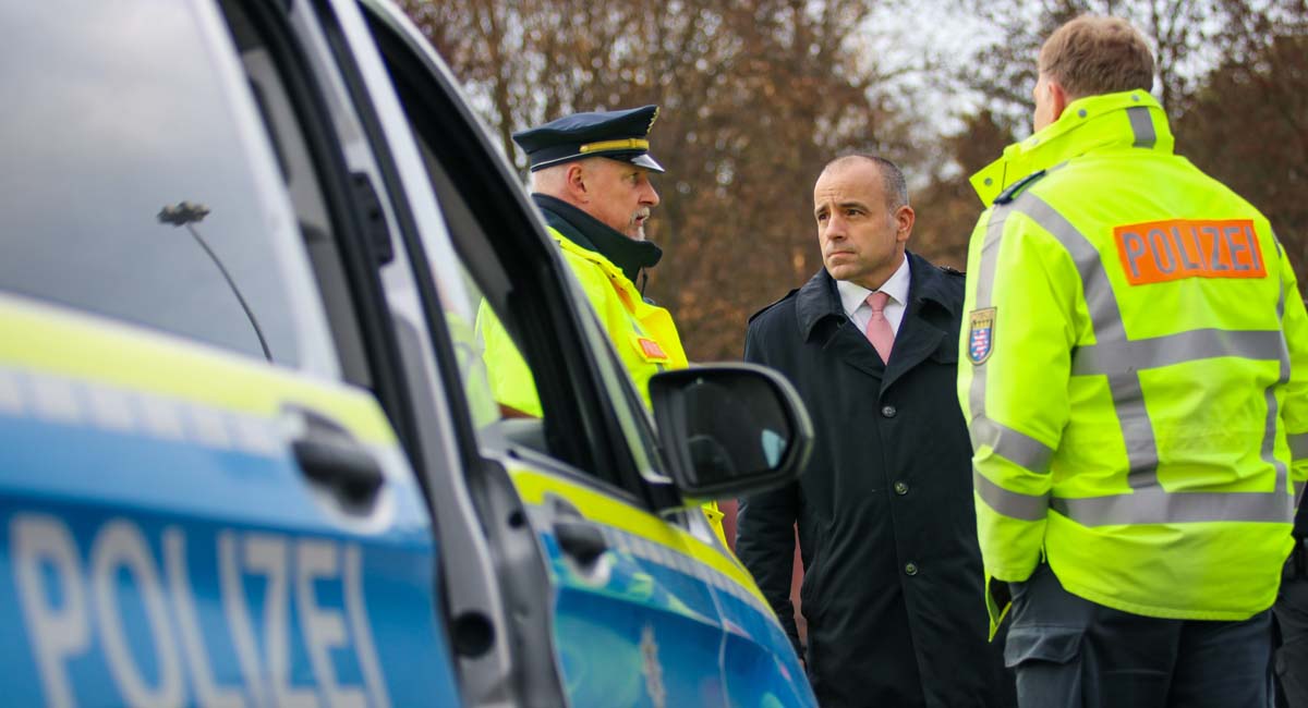 Am Dienstag (20.12.22) hat das Polizeipräsidium Südhessen, in der Zeit zwischen 11.00 und 17.00 Uhr, auf der Rastanlage Lorsch-West eine großangelegte Schwerpunktkontrolle zur Bekämpfung von Wohnungseinbruch und weiterer Eigentumskriminalität durchgeführt. Derartige Kontrollen dienen insbesondere dem Ziel, Straftäter nachhaltig zu verunsichern sowie Südhessen und die angrenzenden Gebiete für die Täter „unattraktiv“ zu machen. Hierbei wurden die Beamten unter anderem von Kräften der Hessischen Bereitschaftspolizei unterstützt. Vor Ort machten sich auch der Präsident des Polizeipräsidiums Südhessen, Björn Gutzeit und der Leiter der Direktion Verkehrssicherheit und Sonderdienste, Polizeirat Achim Romig, ein Bild von den Kontrollmaßnahmen.