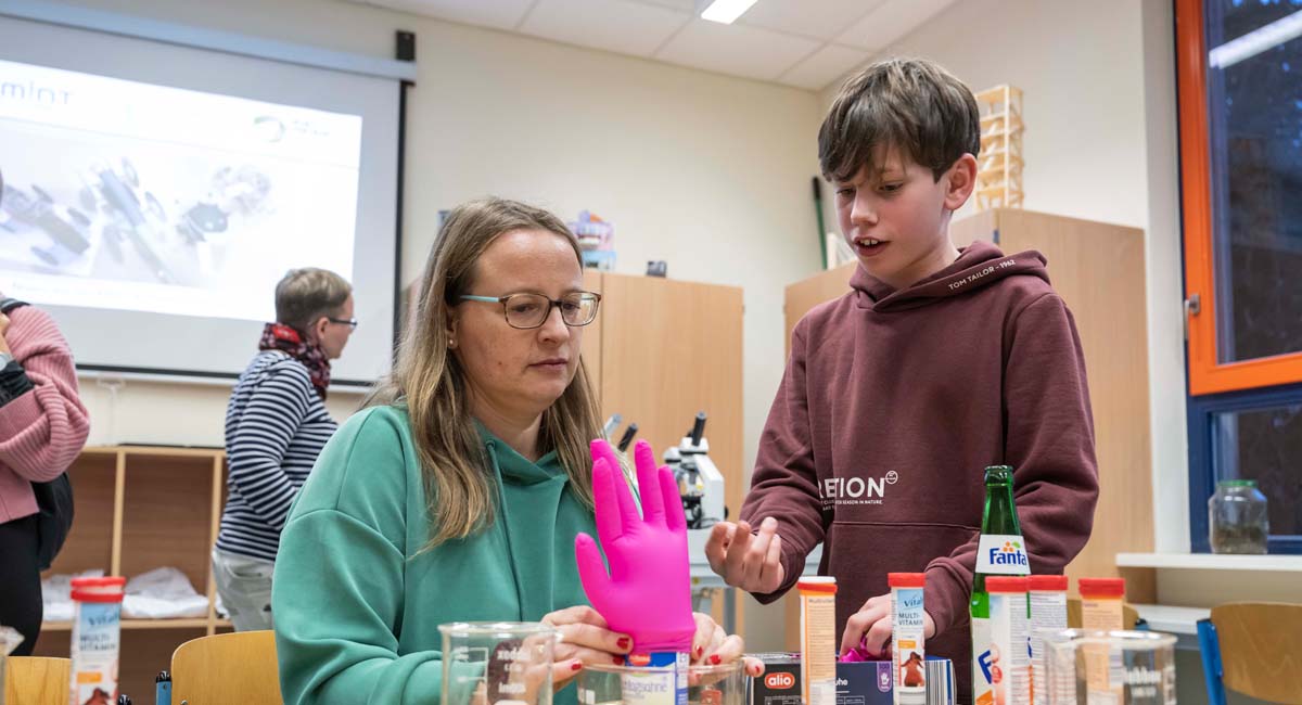 Mit der AG hat die Schule schon Erfahrungen gesammelt, wie der verantwortliche Lehrer Tim Winzenried berichtet: „Wir haben schon verschiedene Wassersorten und Böden untersucht, sind der Haltbarkeit von Farbe auf den Grund gegangen und ein Tüftler hat auch schon seine eigenen Kleber hergestellt.“