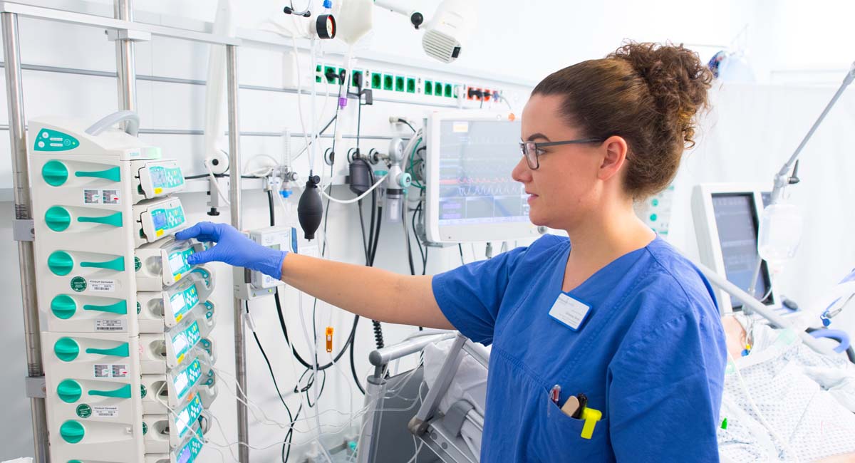 Das Programm richtet sich an Pflegefachpersonen, die gerade in den Beruf starten bzw. wieder einsteigen möchten als auch an Berufserfahrene, die sich in Richtung Intensivpflege neu orientieren wollen. Die Teilnehmer*innen erhalten ein praxisorientiertes Training, das sie Schritt für Schritt an das eigenständige Arbeiten in der Intensivpflege heranführt. Während des Programms lernen sie in ihren praktischen Einsätzen die IMC-Station sowie die drei Erwachsenen-Intensivstationen kennen. „Dabei werden sie von Praxisanleitenden und sehr erfahrenem Intensivfachpersonal begleitet. Nach jedem Stationseinsatz werden Reflexions- und Entwicklungsgespräche geführt. Zusätzlich werden wichtige Grundlagen zu aktuellen Pflegemethoden der Intensivpflege, der Intensivmedizin sowie des Umgangs mit Grenzsituationen in Theoriemodulen vermittelt“, erläutert Britta Dürdoth weiter.