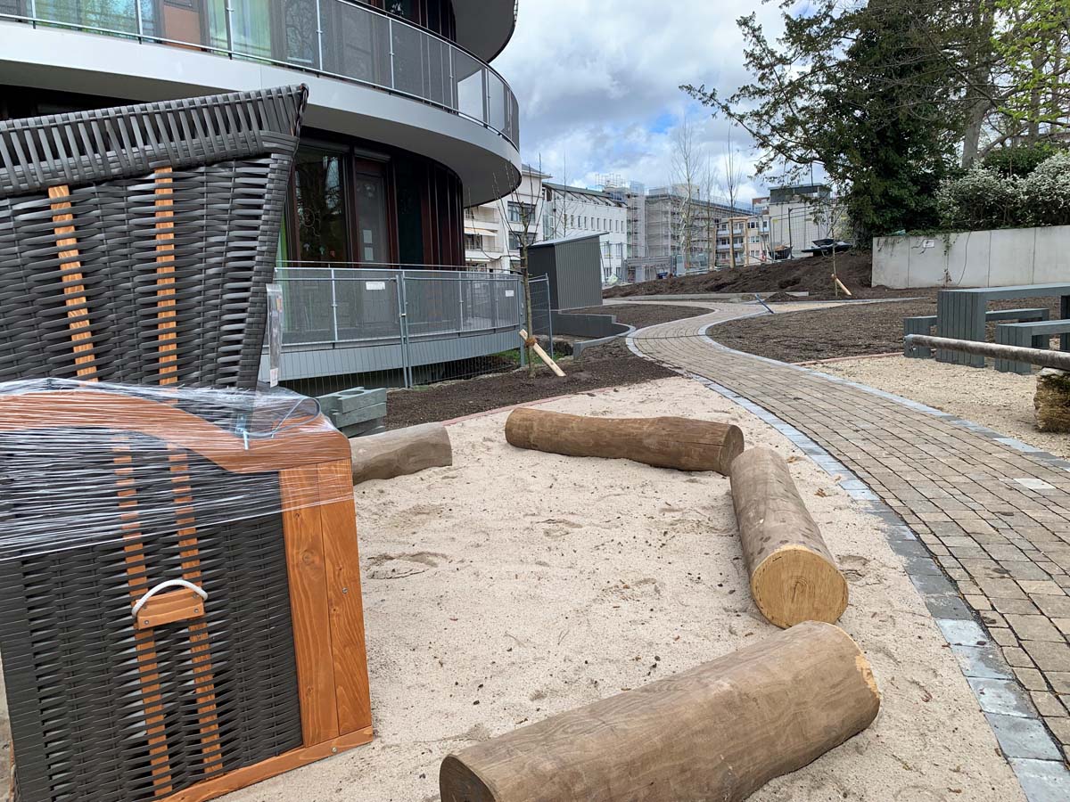 Im Juni 2023 wird der Park fertiggestellt sein. Ein Teilbereich wird bereits im Mai für die Psychosomatische Abteilung der Darmstädter Kinderkliniken freigegeben.