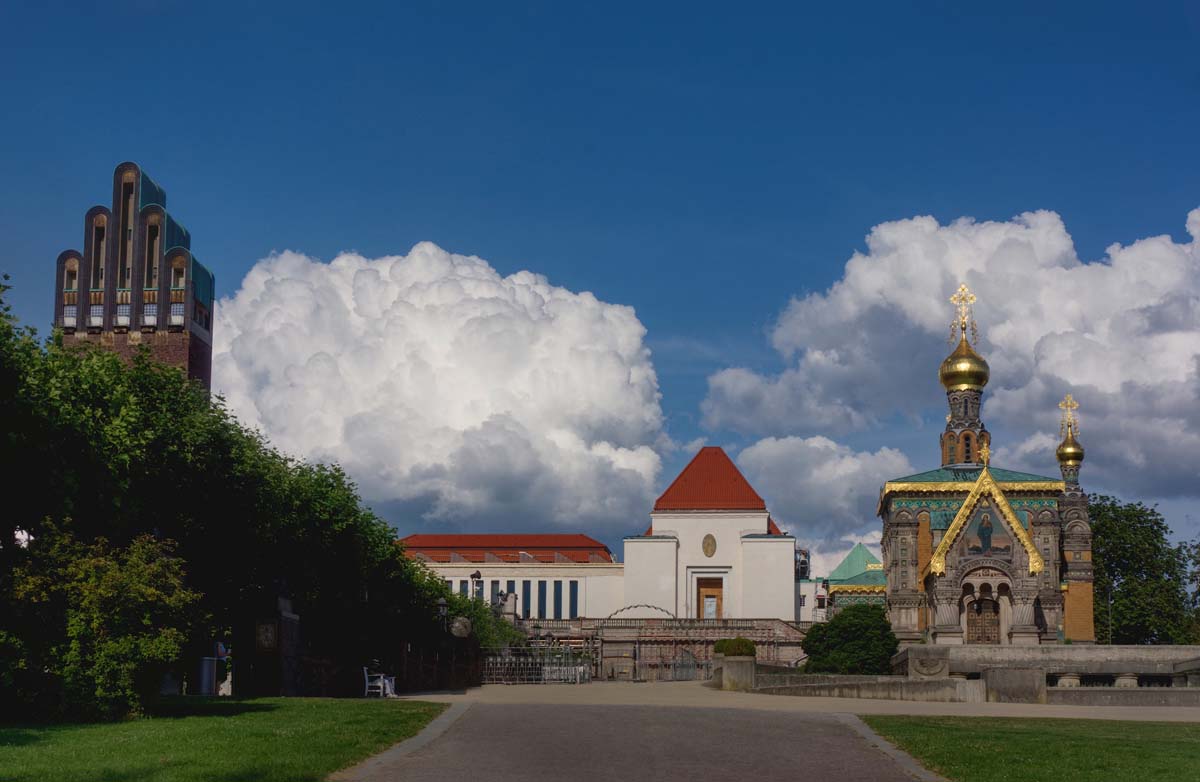 Beflügelt durch seine Gartenbücher widmet er sich in dieser Bildauswahl über Besonderheiten und magische Orte rund um die Mathildenhöhe in vielfältigen Lichtstimmungen – dazu zählt beispielsweise der Skulpturengarten am Spanischen Turm.
