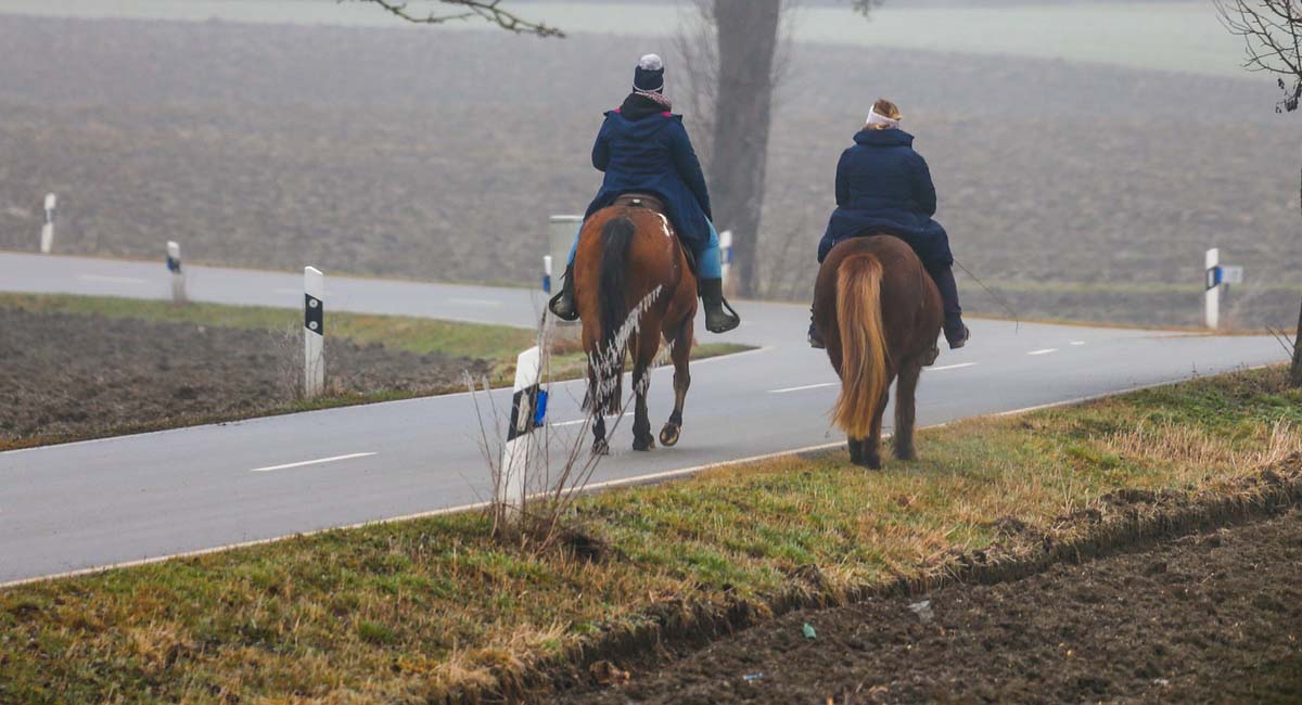 Ob beim Ausreiten oder auf dem Weg zur Koppel – fast jeder Reiter und sein Pferd werden über kurz oder lang mit dem Straßenverkehr in Kontakt kommen. Als Fluchttiere reagieren Pferde auf unbekannte und laute Geräusche sowie auf schnelle Bewegungen oft schreckhaft. Deshalb ist es wichtig, dass Reiter ihre Tiere an die Straßensituation gewöhnen. Auch andere Verkehrsteilnehmer sollten ihr Verhalten anpassen, wenn sie Pferden begegnen – das gilt für Auto- und Motorradfahrer ebenso wie für Radfahrer.