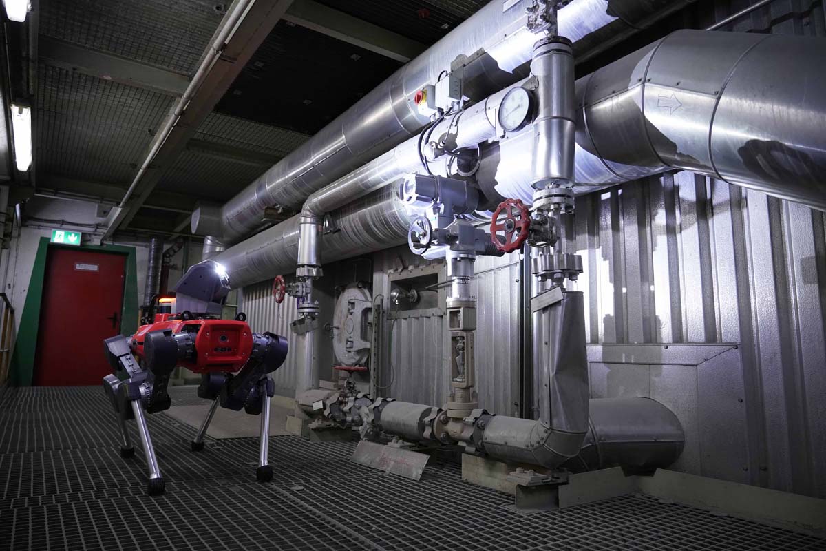 Robodog ANYmal kam im Rahmen eines Pilotprojektes im Kesselhaus des MHKW zum Einsatz, in dem es sehr laut und sehr heiß ist. Er inspizierte Anlagen, machte Fotos- und Tonaufnahmen und las Messgeräte ab. Alle Daten leitete der Robodog digital an seine „Herrchen“ weiter. „Der Einsatz im Kesselhaus ist für die Mitarbeiter sehr belastend. Wir könnten das künftig durch den digitalen Kollegen effektiv vermeiden“, sagt ENTEGA-Vorstand Andreas Niedermaier.