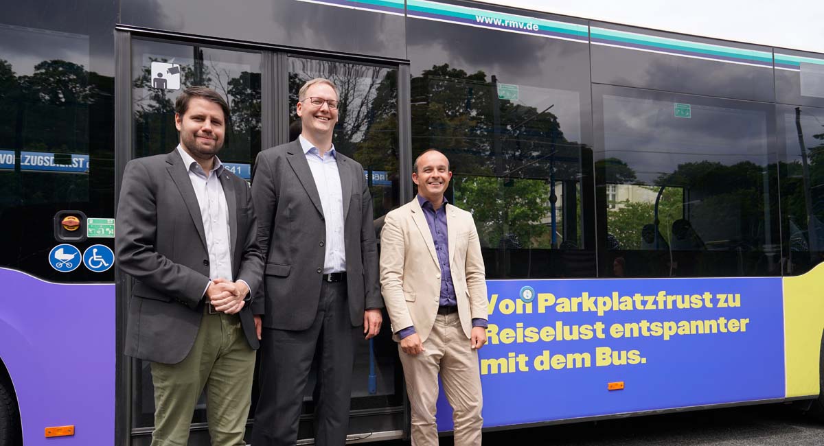 Darmstadt Mobilitätsdezernent Paul Wandrey, HEAG mobilo-Geschäftsführer Johannes Gregor und Lutz Köhler, Erster Beigeordneter des Landkreises Darmstadt-Dieburg, (v.l.) stellten am Dienstag die Kampagne „DA, DI, & DU“ vor.