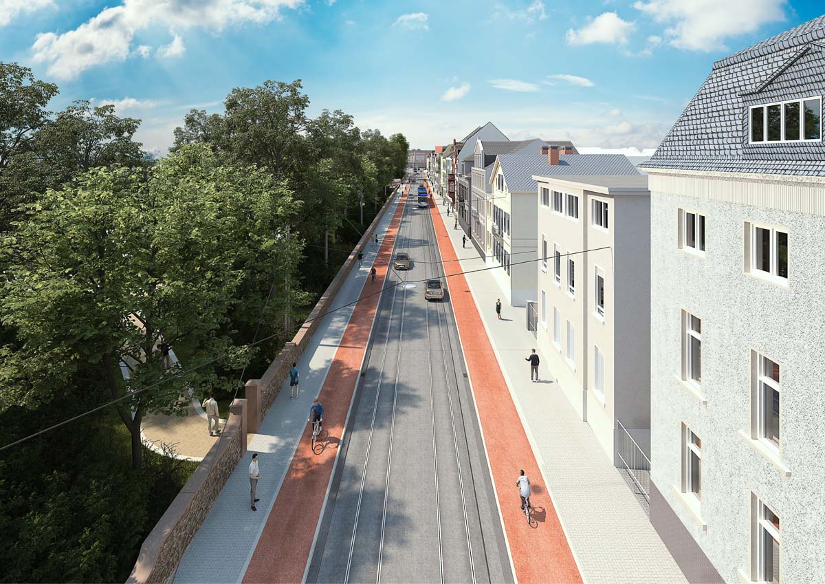 Bereits seit dem 4. September verkehren wieder Straßenbahnen durch die Frankfurter Straße. Derzeit stellt die Wissenschaftsstadt Darmstadt den Radweg auf der westlichen Seite her. Diese Arbeiten werden Anfang des kommenden Jahres abgeschlossen sein. Ursprünglich war der Abschluss der Arbeiten für noch in diesem Jahr vorgesehen, Liefereinschränkungen bei Baumaterialien und die begonnene kalte Jahreszeit führen jedoch zu einer Verlängerung der abschließenden Bauphase. Die Verkehrsführung für den Auto-, Fuß-, und Radverkehr bleibt weiter unverändert. Nach Abschluss der Bauarbeiten verfügt die Frankfurter Straße dann über einen neu geordneten Verkehrsraum mit getrennten Wegen für Radfahrer*innen und Fußgänger*innen in beide Richtungen.