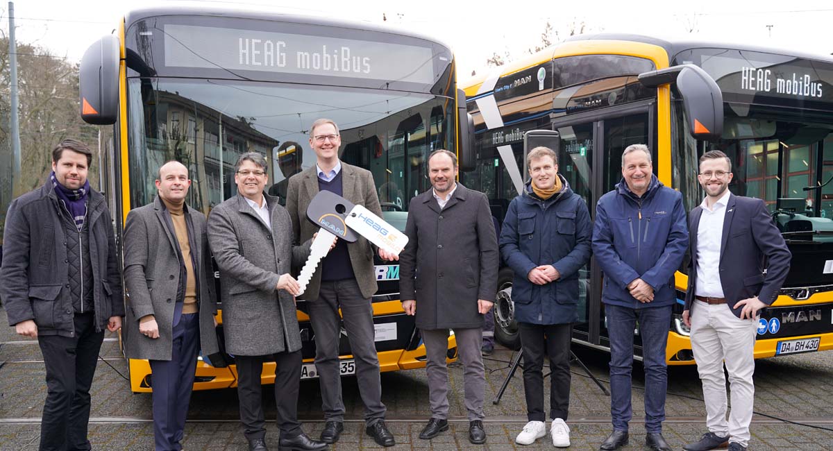 Das Lion’s City Modell punktet mit einer Gesamtkapazität von 640 kWh aus acht Batteriepaketen mit ausgereifter Lithium-Ionen-Zelltechnologie (NMC). Da sich diese Batterypacks auf dem Dach der Busse befinden, sind sie im Falle eines Auffahrunfalls weit weg vom meist betroffenen Heckbereich platziert. Besonders ist außerdem, dass im hinteren Fahrgastraum der Motorturm entfällt. Dies ermöglicht zusätzliche Sitzplätze. „Es freut uns sehr, dass die HEAG mobilo sich für unsere vollelektrischen Gelenkbusse entschieden hat und wir damit unseren Beitrag zur Elektrifizierung der Gesamtflotte beitragen können. Die Busse bieten die perfekte Kombination aus Platz, Fahrerkomfort und Sicherheit. Und das emissionslos“, ergänzt Darko Simeunovic, Leiter Bus Verkauf, MAN Truck & Bus Deutschland GmbH.