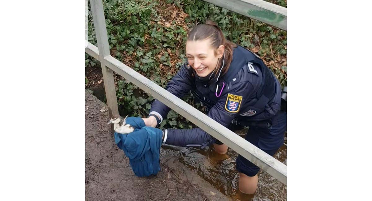 Eine Nilgansfamilie hat am Sonntagmittag (11.02.24) gegen 13 Uhr in der Rudolf-Müller-Anlage in Darmstadt für Aufsehen gesorgt. Ursache hierfür waren fünf Küken, die in einen dortigen Bachlauf stürzten und aus eigener Kraft nicht mehr herauskamen. Die Eltern der fünf Küken machten glücklicherweise lautstark auf sich aufmerksam, sodass besorgte Bürger das Problem erkannten und die Polizei verständigten.