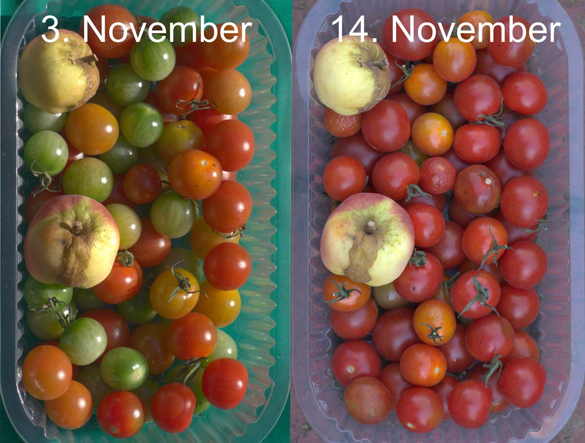 Wem Konfitüre aus grünen Tomaten nicht schmeckt, kann sie alternativ nachreifen. Denn Tomaten gehören, wie Äpfel und Birnen, zu den klimakterischen Früchten, d.h. sie lassen sich nach der Ernte gut nachreifen.