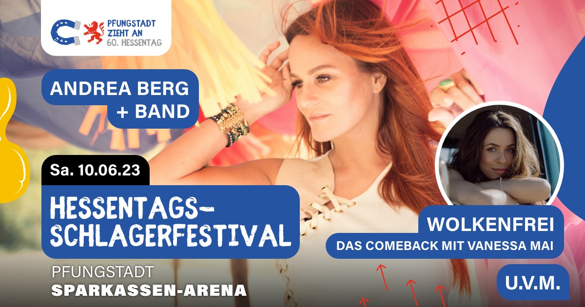 Am 10.06.23 findet auf dem 60. Hessentag in Pfungstadt das große Schlagerfestival mit Andrea Berg und Gästen statt. Nun wurde die Liste der Künstlerinnen und Künstler, die an diesem Abend auf der Bühne stehen werden mit Wolkenfrei und Vanessa Mai, um Namen ergänzt, die die Herzen der Besucherinnen und Besucher des Festivals höherschlagen lassen dürften. Weiterlesen